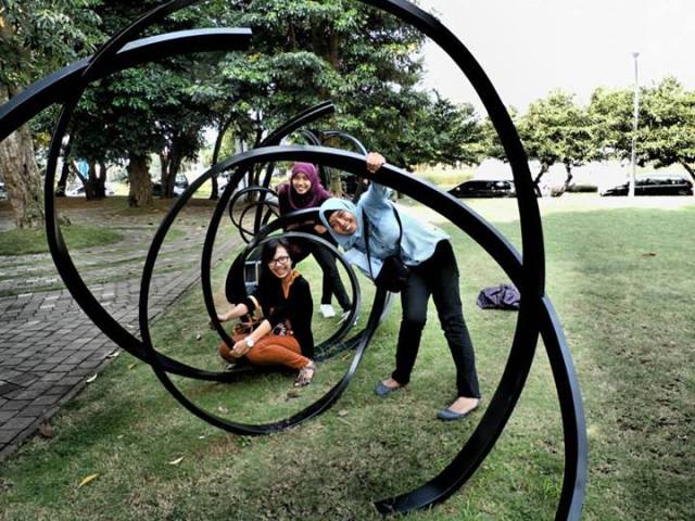 Nah, beres Dzuhur, melajulah kita ke tempat destinasi, Ah Poong! FYI, buat kami bertiga ini tempat sama sekali baru. Begitu masuk, cukup tercengang juga, makin masuk, makin tercengang. Ada juga tempat beginian di Bogor. Eh, di Sentul tepatnya. Jadi yang pertama kali terlihat itu adalah tulisan Ah Poong dengan desain uniknya, sedikit masuk bertemu dengan tetamanan, makin masuk, tersajikanlah patung-patung unik dan, yah begitulah. Haha. (Harus liat sendiri baru bisa gambarin). Yang paling bikin wow pas lihat big transformer. Itu tinggi dan gedenya cukup subhannallah.