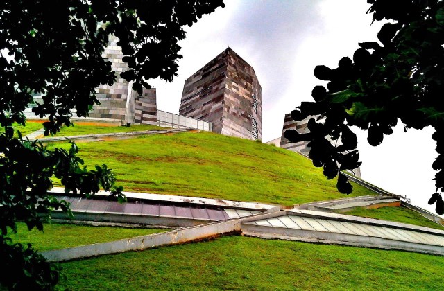 Sebelum masuk ruang baca, seperti biasa memilih untuk keliling dulu. Selalu suka sama arsitektur bangunan ini. Keren. Walaupun yang paling bikin adem, tetap pemandangan luarnya. Danau..