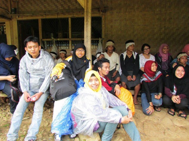 Setengah jam kemudian, mobil merapat ke sebuah gubuk. Disini udah berkumpul dengan amat ramainya lelaki tua-muda-kecil, mengenakan putih dan hitam. Mereka menyambut kami. Selamat datang di Baduy.