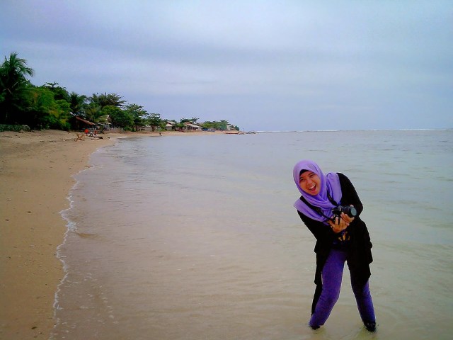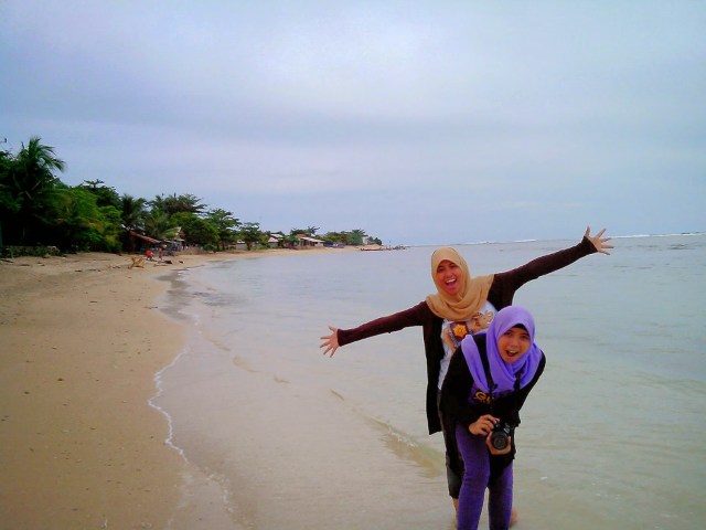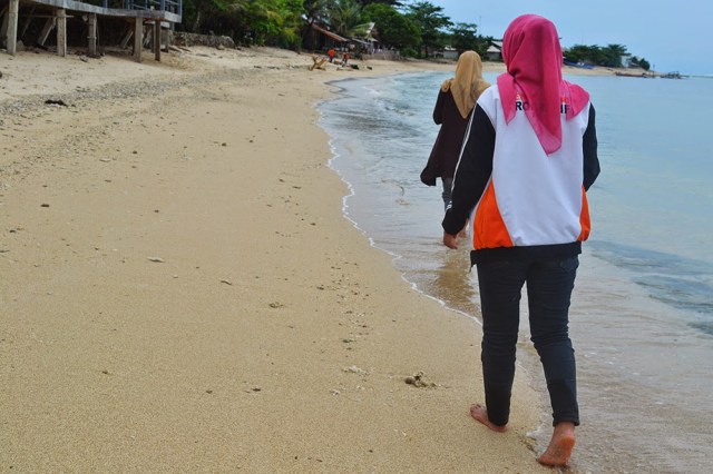 | Susur pantai sambil menunggu para lelaki Sholat Jum’at. |