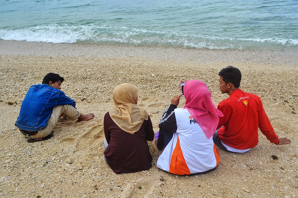 Selebihnya, inilah sebagian foto-foto yang berhasil diabadikaaan. Mulai dari bersantai di pesisir, sampai Eril yang sepanjang susur pantai sibuk cari batu-batu yang berbentuk huruf F, a, c, h, r, i, L, u, sampai bentuk hati. -_-