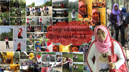 Thanks buat kealay-an yang.. (okelah) menyenangkan. Walaupun aku juga lumayan malu kakaak, pas jalan ke ATM Centre diliatin orang-orang gara-gara iring-iringan kalian pada pake topeng itu, sambil bawa-bawa nama Ratna Sofia, sambil pake payung. Rest in Peace, banget? Hah, tapi apapun namanya, mau Kominfo mau Teman Sepermainan, me love you for no reason. Lengkap terus nih ye :p