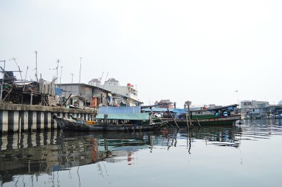 | Kiri bangunan super megah akan dibangun. Kanan, kapal-kapal yang kini menjadi ‘rumah’ |