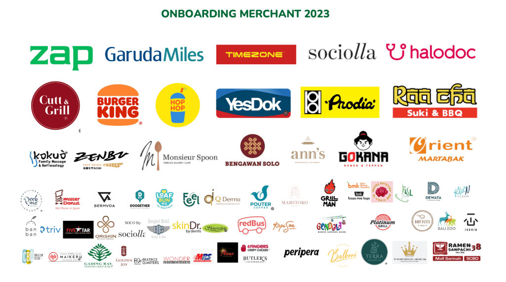 Capaian 87 New Merchant Partner, yang baru bergabung bersama UV di tahun 2023 kemarin membuat cukup banyak warna dan pilihan buat user kami. Mulai dari klinik ZAP yang fenomenal dengan package series-nya, berbagai wahana mainan anak semacam Timezone sampai Bali Zoo, hingga Garuda Miles yang memungkinkan kamu terbang dan upgrade class dengan sekali klik.