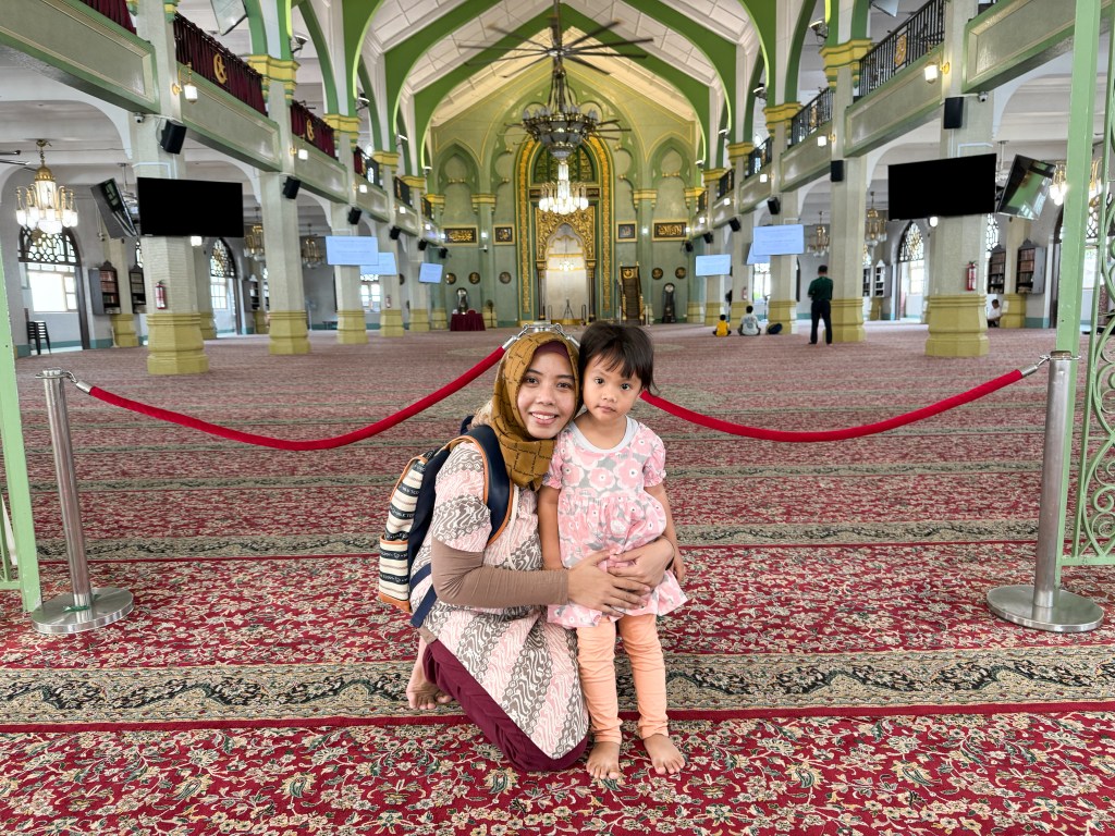 The Sultan Mosque (Masjid Sultan) is one of the main attractions I was very keen on visiting. Singapore was interesting to explore because of the unique architecture of this beautiful mosque with its golden dome against the backdrop of colorful shophouses in Kampong Glam. Each step towards the mosque brought me to another part of the world full of life and culture.
