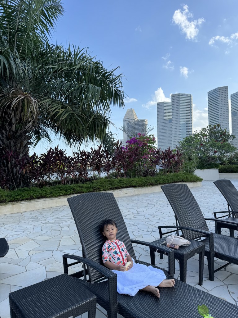 While we were at the pool looking over the city, we could see parts of Marina Bay further away. It was a great morning splashing and watching her play, and seeing the city’s buildings as a backdrop was a nice way to set the stage for yet another day of adventure.