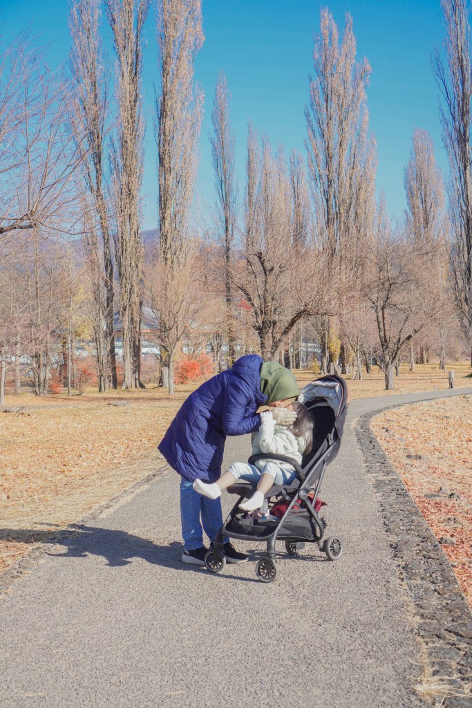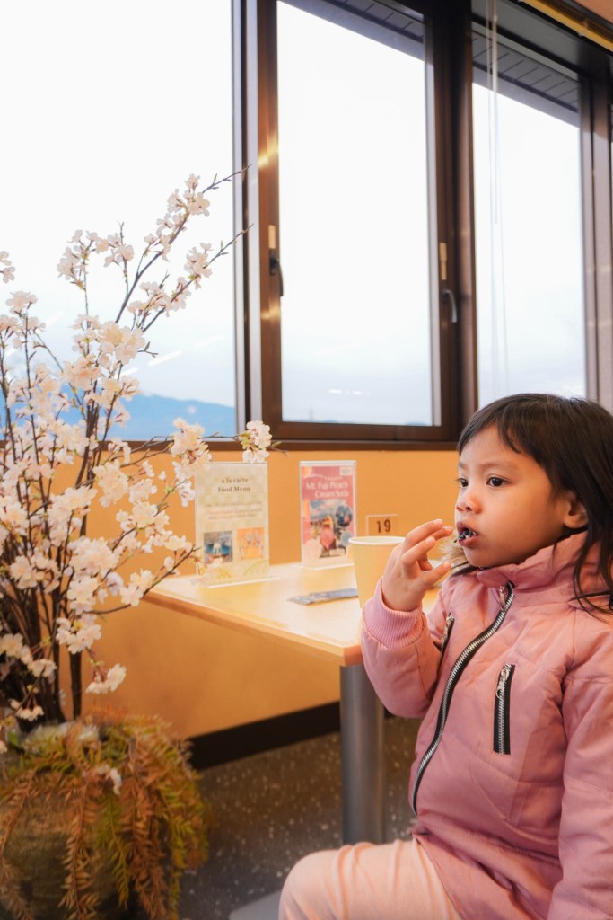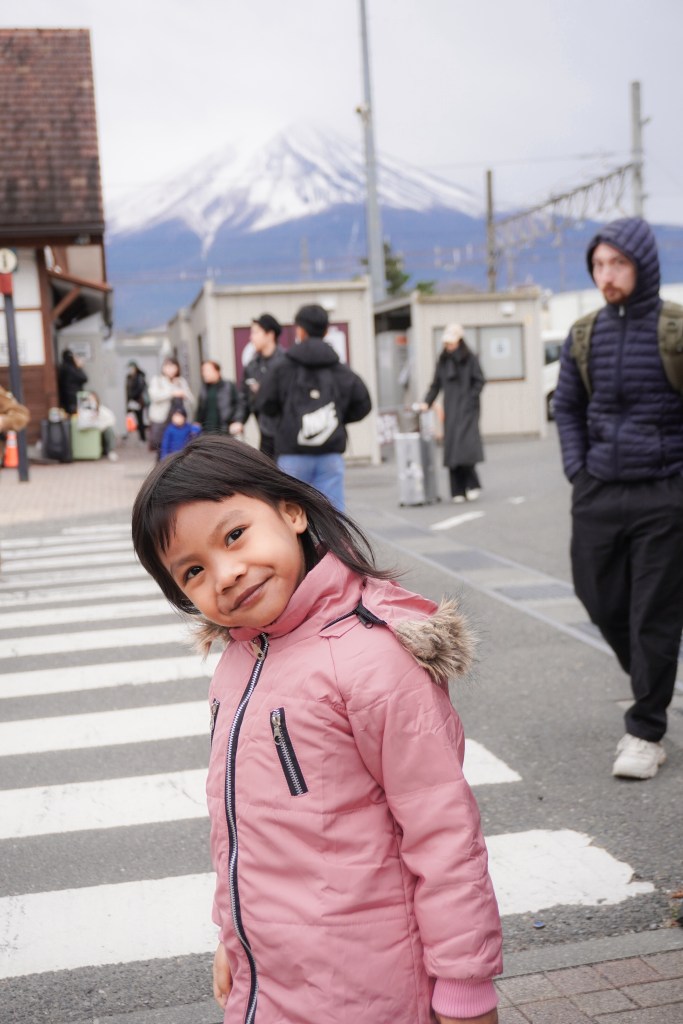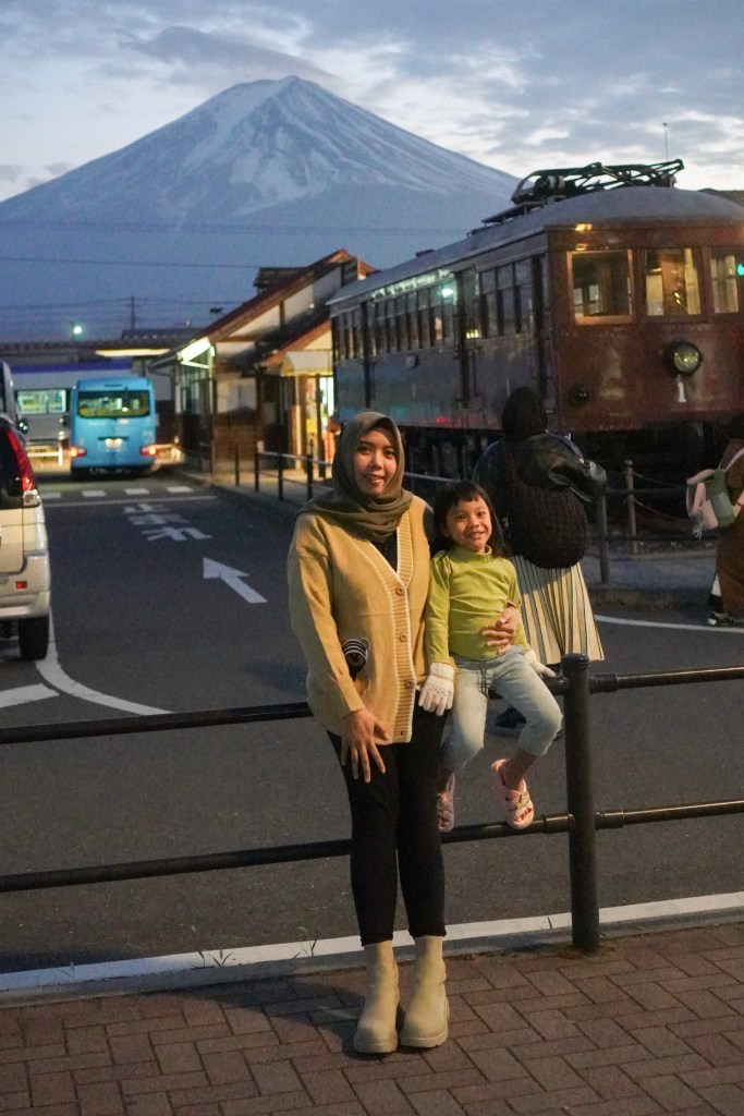 Fuji mengajarkan kami untuk melambat. Hotel yang sederhana, udara yang dingin, dan Gunung Fuji yang setiap pagi menyapa dari jendela kamar. Berdiri besar, tenang, dan tidak tergesa. Hari-hari kami di Kawaguchiko diisi dengan berjalan pelan di sekitar danau, duduk lama tanpa agenda, dan berhenti berkali-kali hanya untuk menatap Fuji. Mik bermain kerikil, berlari kecil, lalu kembali ke pelukan. Tidak banyak rencana, tapi rasanya utuh.